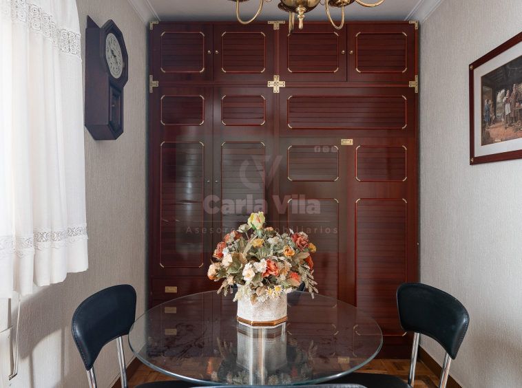 Su gran salón comedor, con chimenea, balcón y dos estancias que se pueden abrir en un único espacio espectacular, es sin duda el centro de todas las posibilidades. El resto de la vivienda respira orden y comodidad: cinco habitaciones (tres de ellas como dormitorio), tres baños, una cocina que conecta con la galería y que fácilmente podría ganar metros, y un hall amplio con armarios empotrados que hacen la vida más práctica. Todo en muy buen estado, listo para entrar a vivir, aunque con el potencial de transformarse en algo todavía más personal y vibrante.