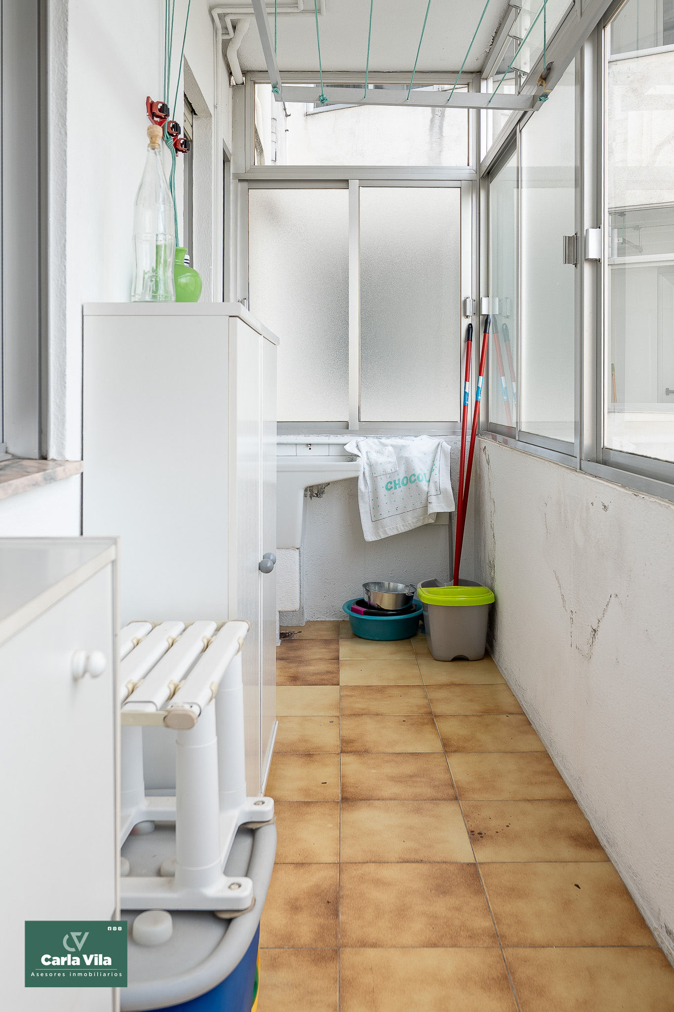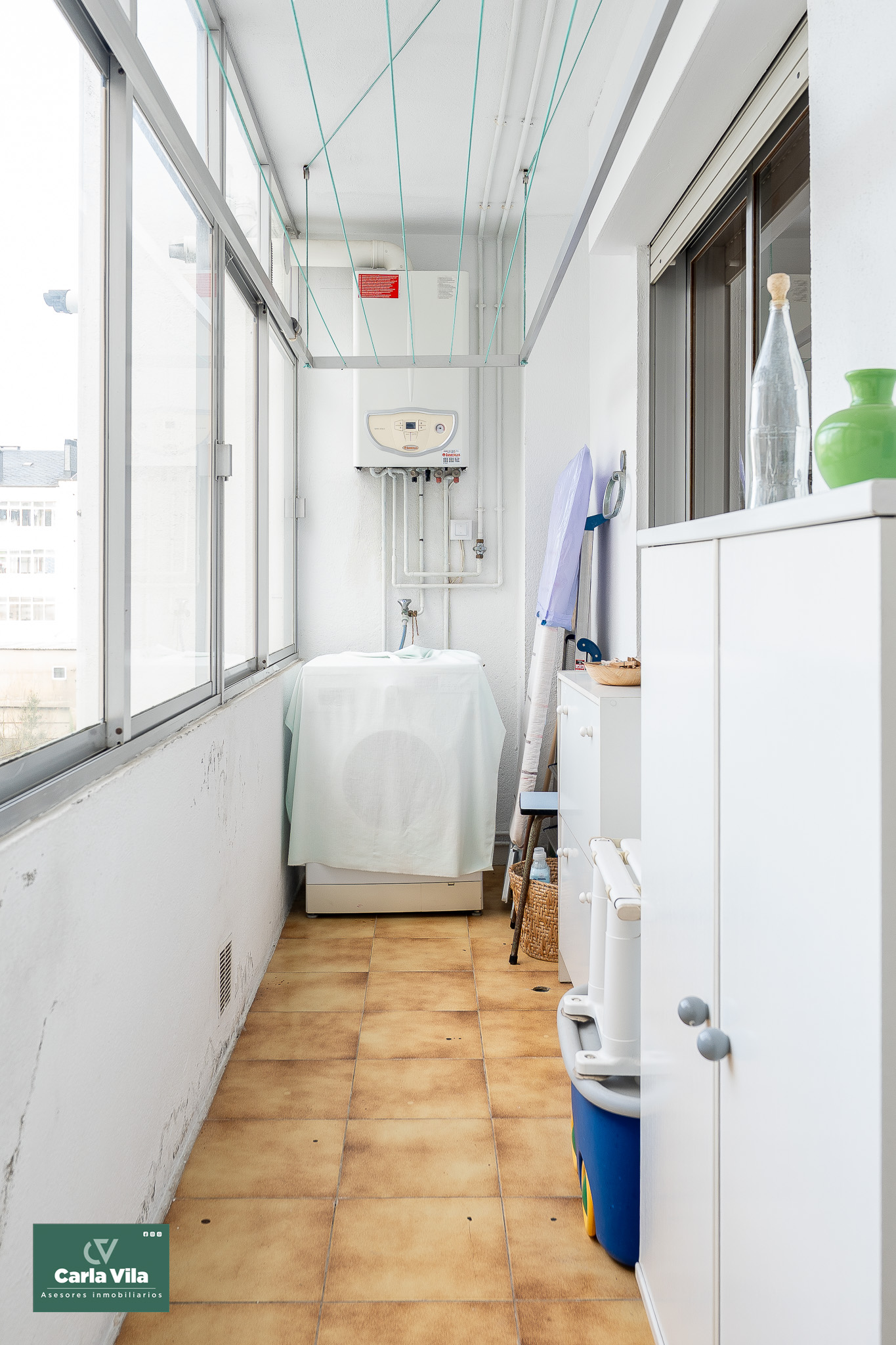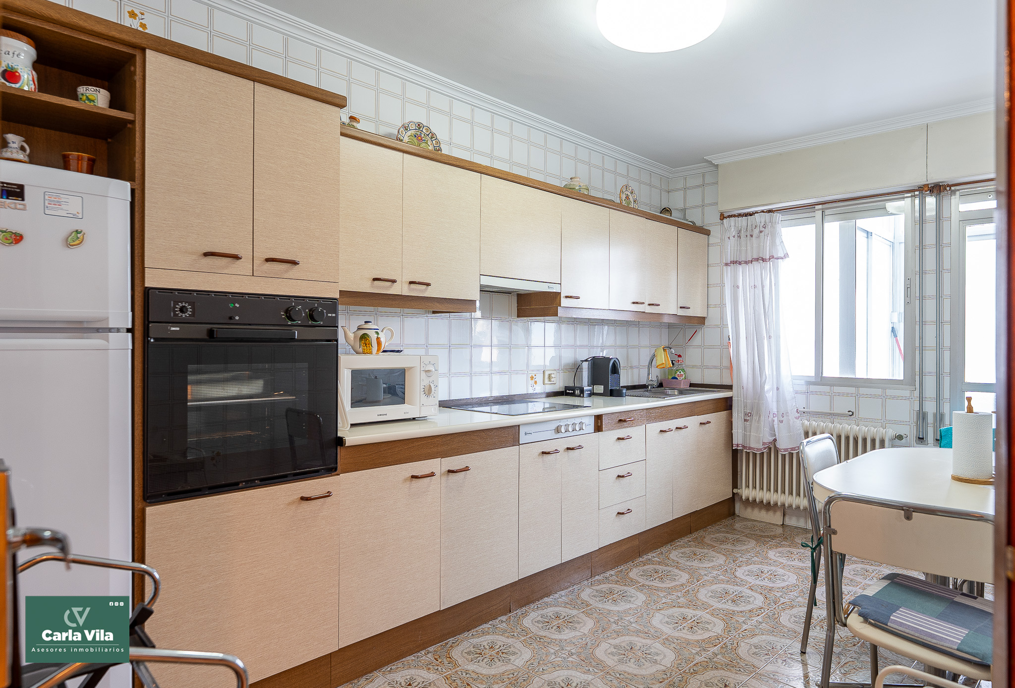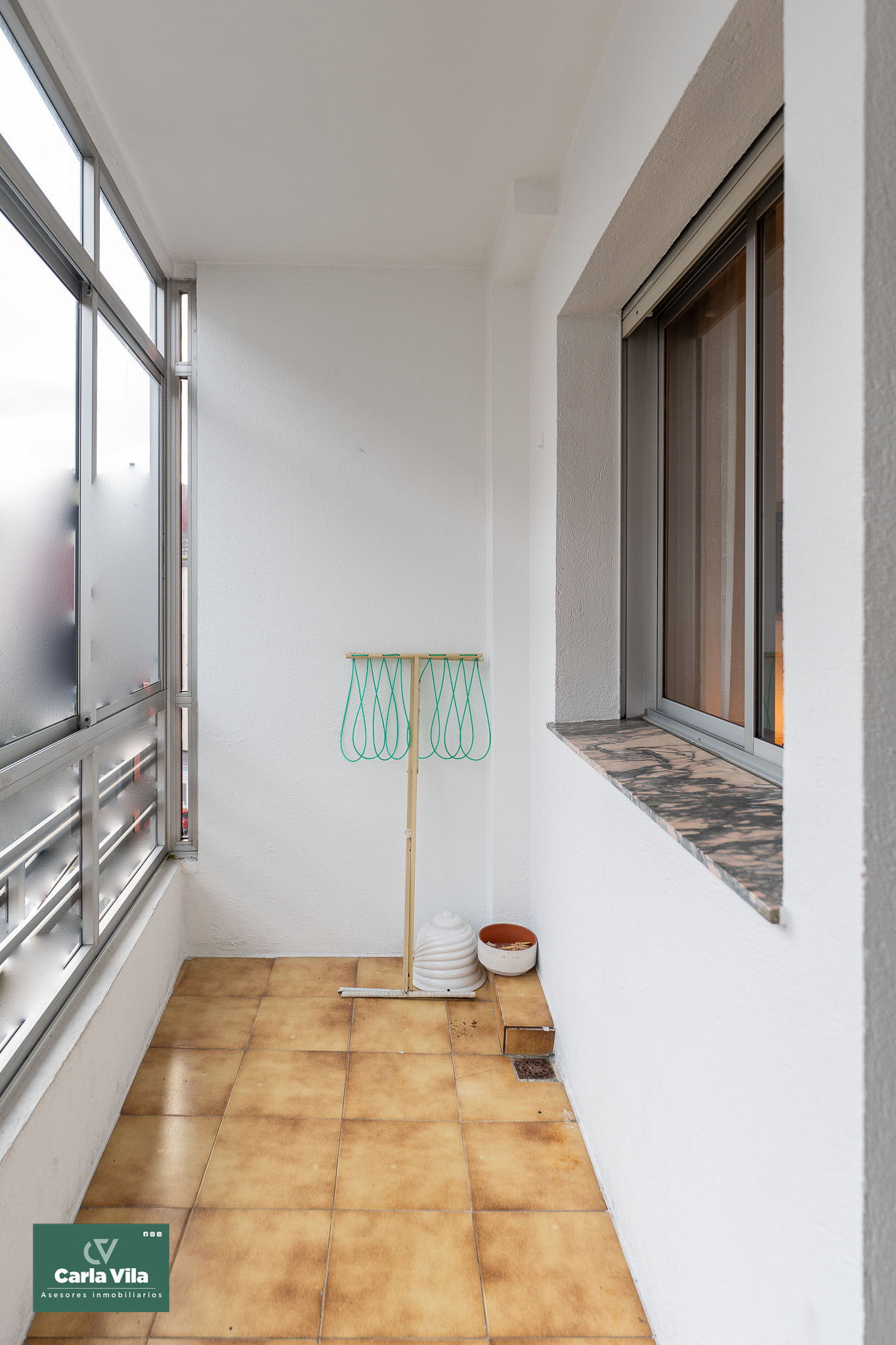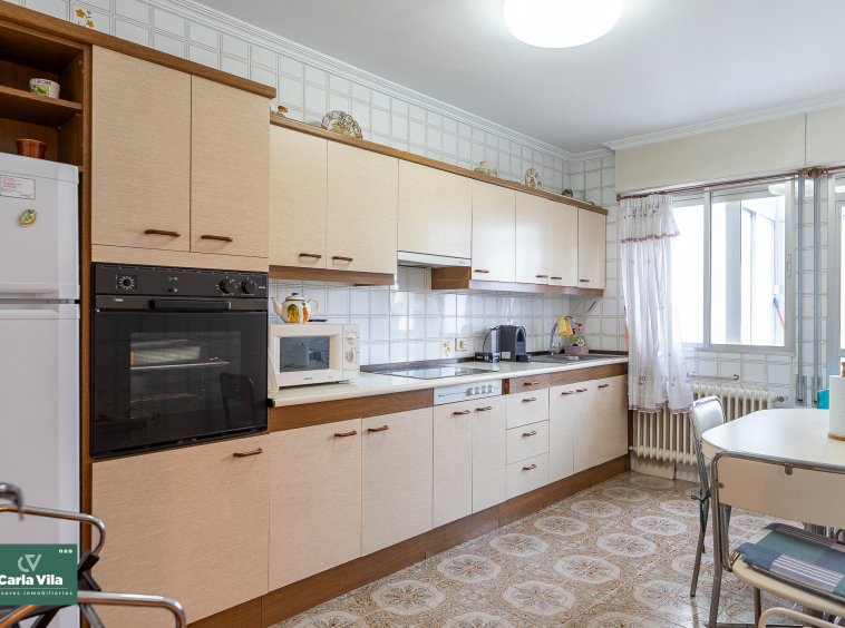 La fachada posterior, orientada al noroeste, también cuenta con vistas abiertas y recibe el sol de la tarde. En esta parte encontramos una cocina amplia, luminosa y en muy buen estado, con espacio office y salida a una segunda galería de mayor tamaño, pensada para la colada y las tareas auxiliares. A esta misma zona se asoma otra habitación amplia y tranquila.
