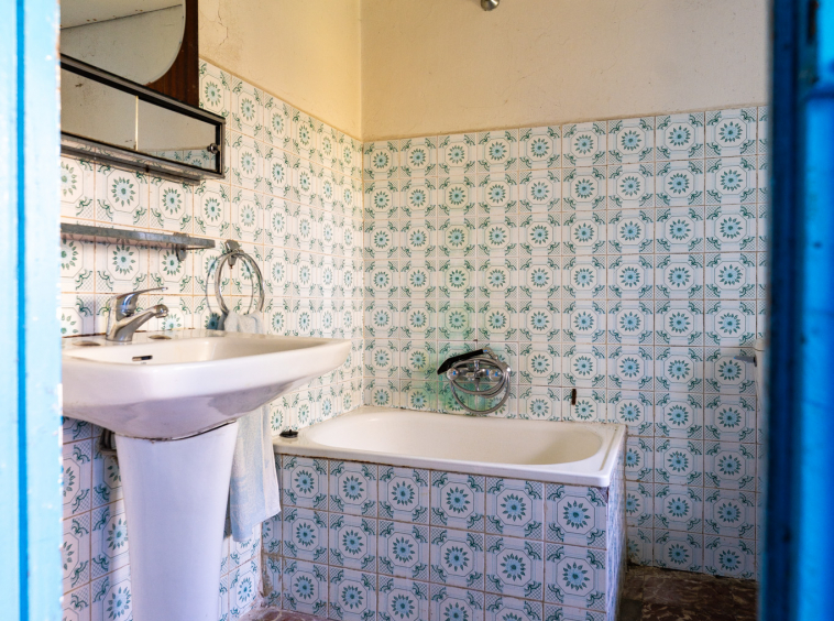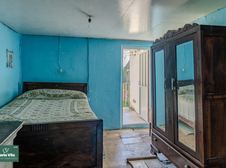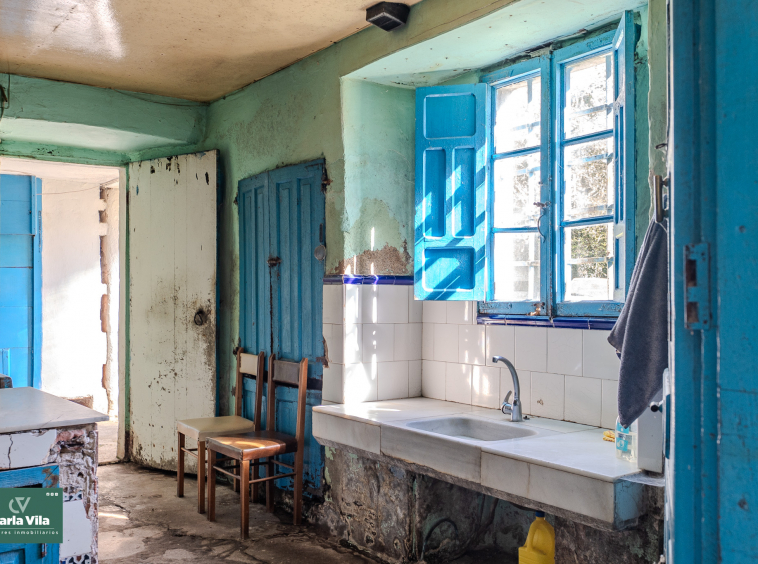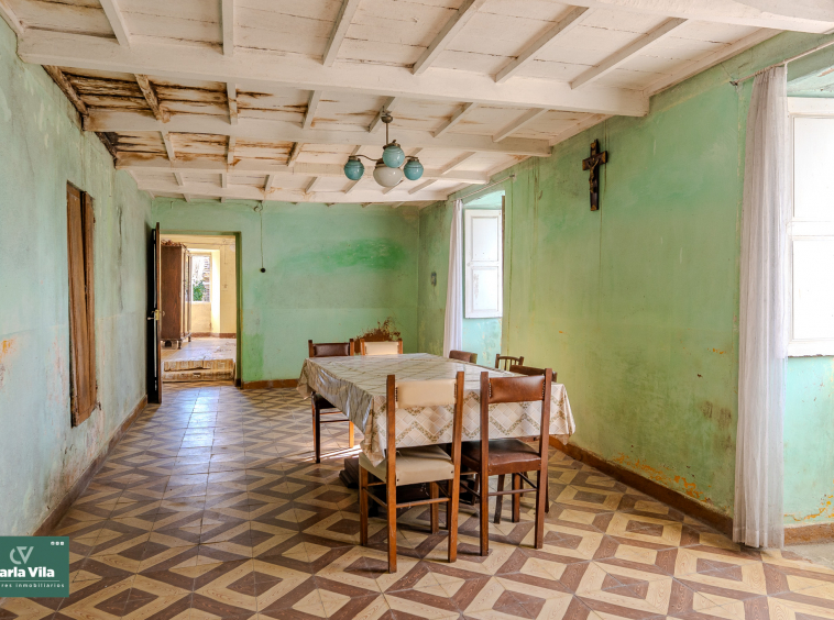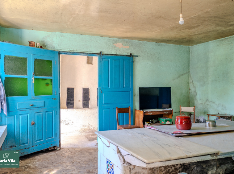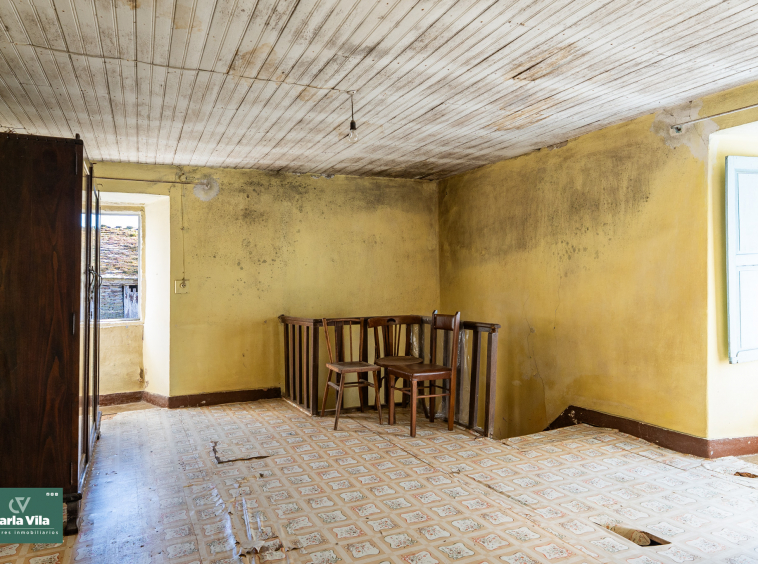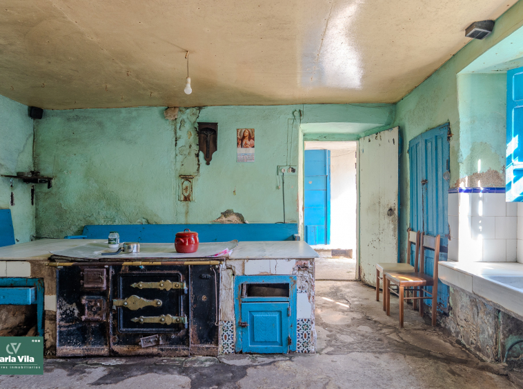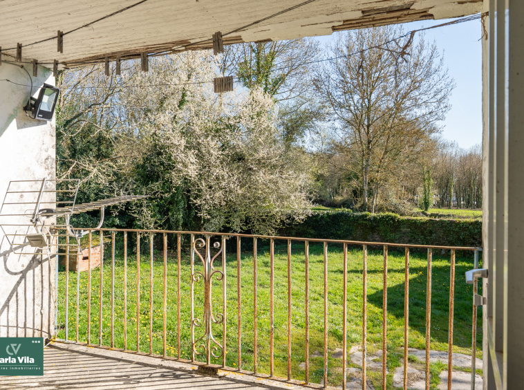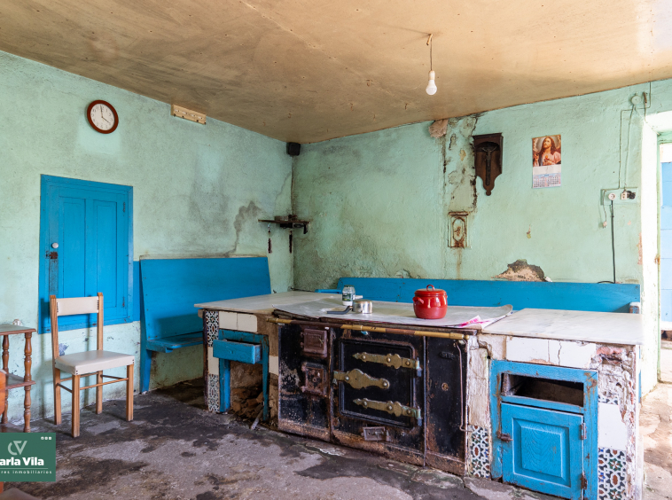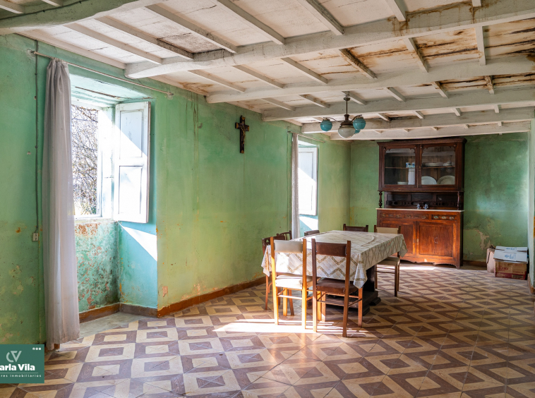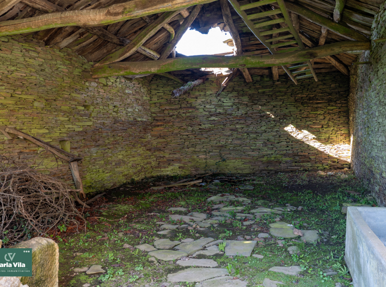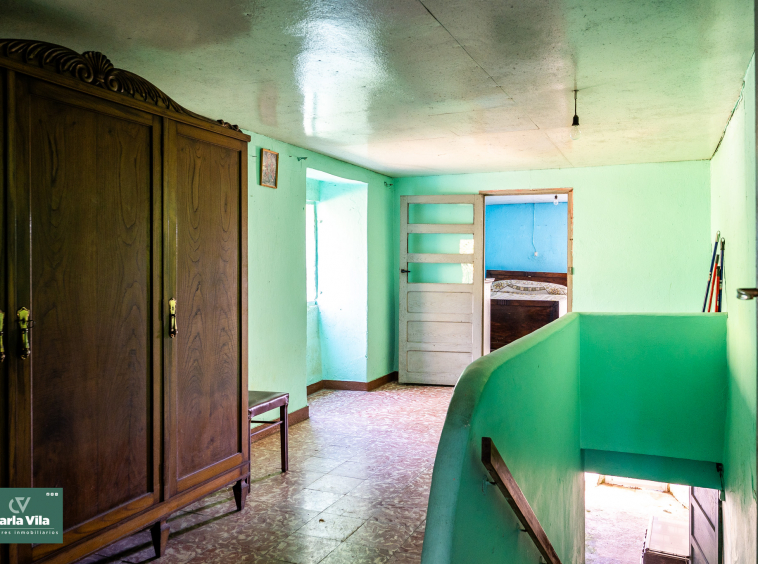 La vivienda, con 220 metros en planta baja y 110 en la superior, se presenta como un punto de partida claro. Necesita una rehabilitación completa, sí, pero también ofrece una base sólida para proyectar un chalet de piedra con mucha personalidad. La combinación de zonas con placa de hormigón y otras con vigas de madera permite jugar con la reforma, respetando su esencia o llevándola hacia un concepto más actual. Arriba, el balcón se abre hacia la finca y la era, regalando esa conexión con el exterior que invita a imaginar cómo será el día a día aquí.