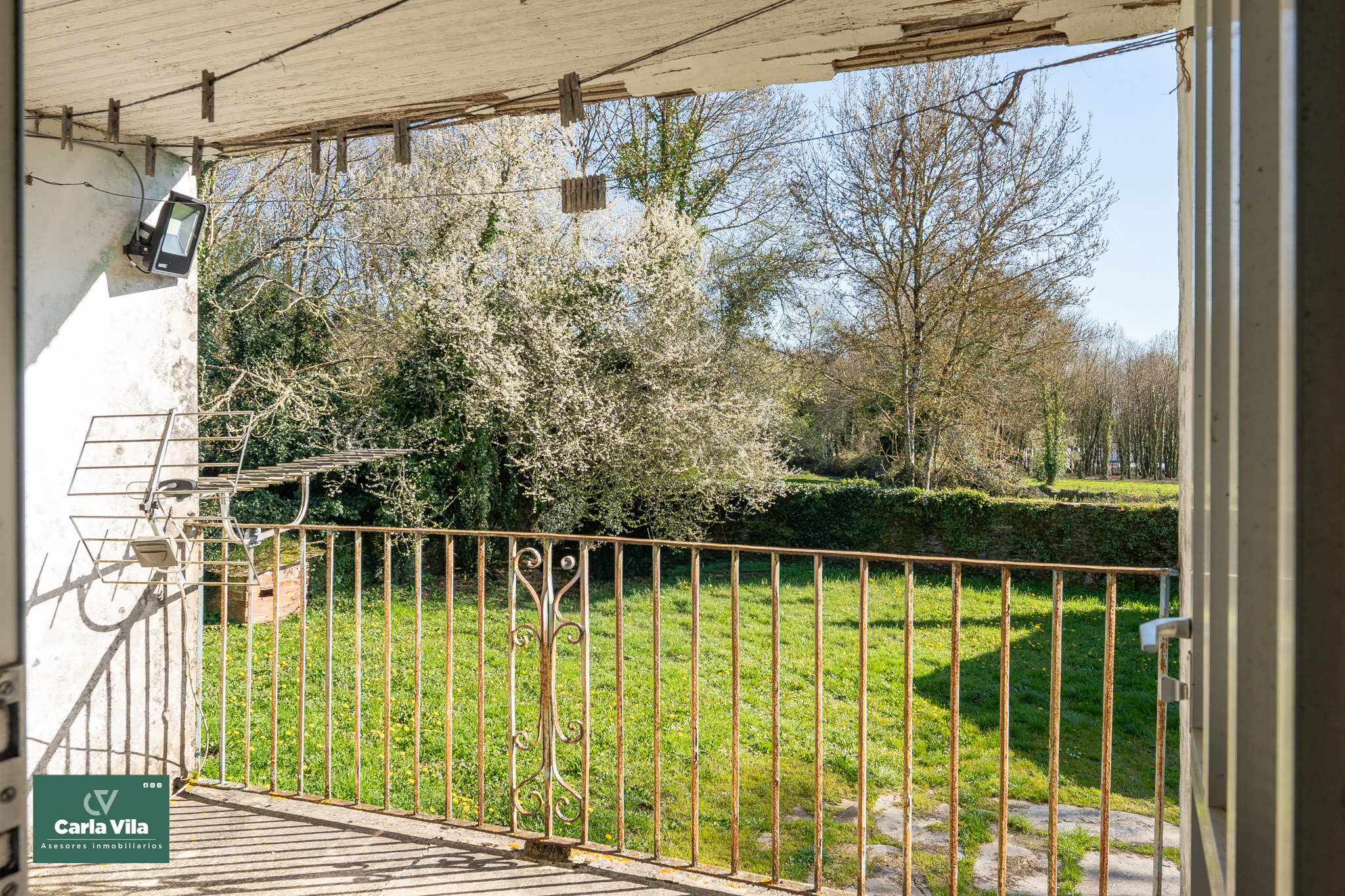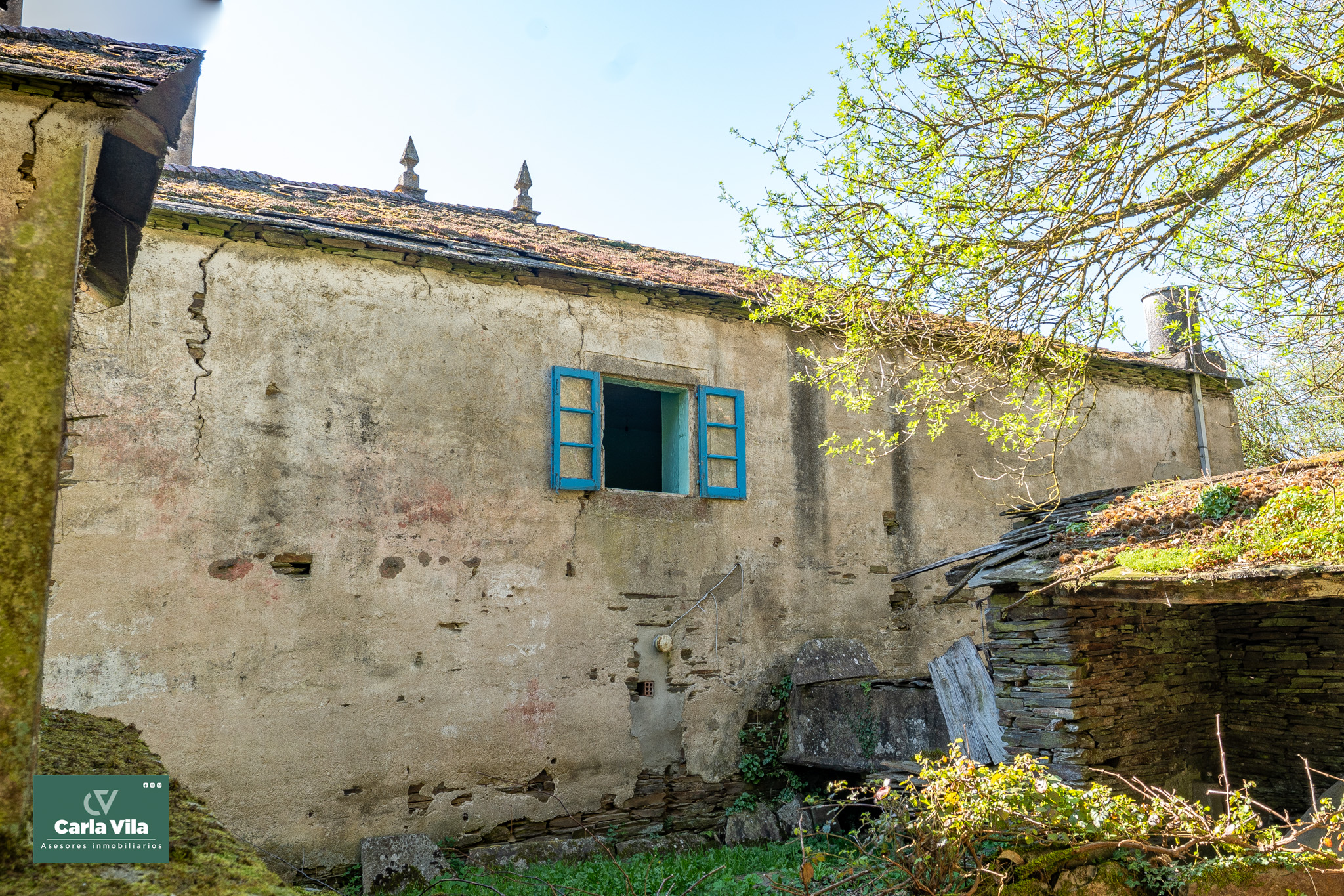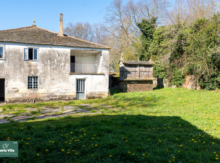 Y es que el exterior tiene mucho que decir. Casi 5.000 metros de parcela que rodean la vivienda y le dan espacio, perspectiva y tranquilidad. El hórreo, siempre presente, y los alpendres completan el conjunto aportando funcionalidad y encanto, con opciones reales de convertirse en garaje, cenador o esos espacios auxiliares que terminan siendo protagonistas sin pretenderlo.