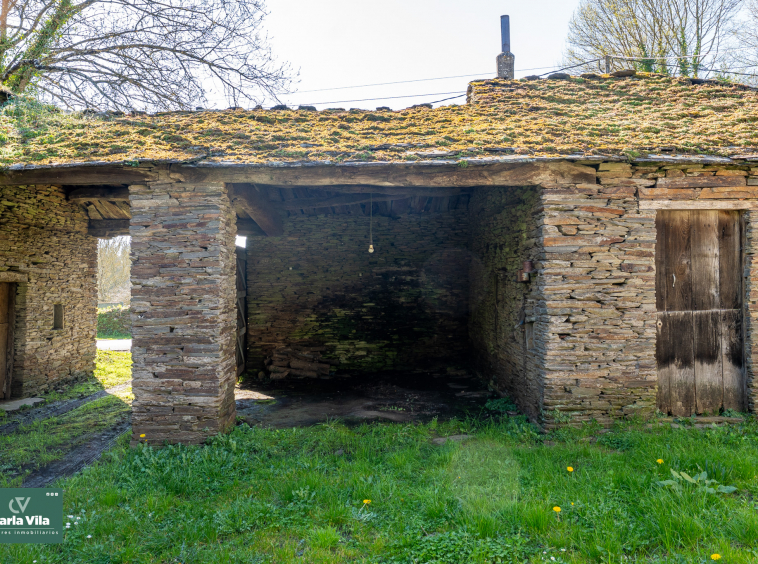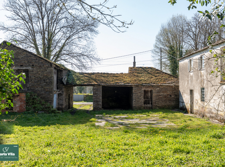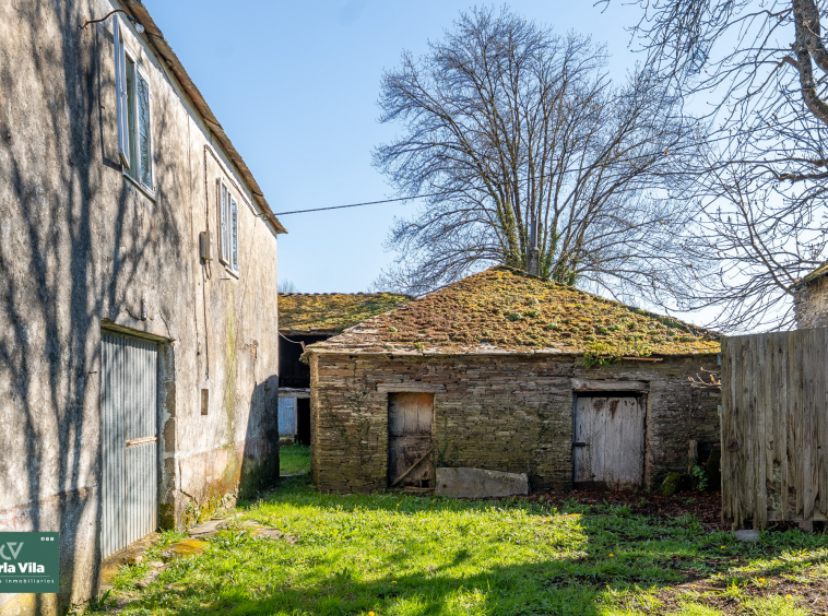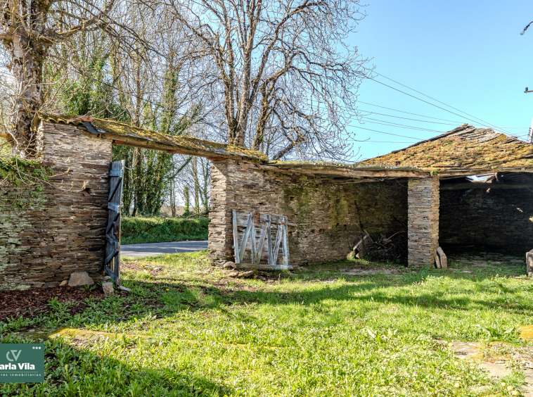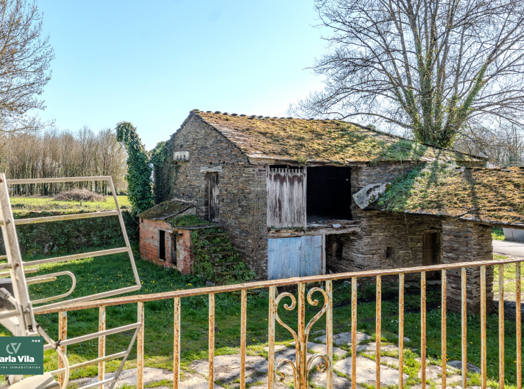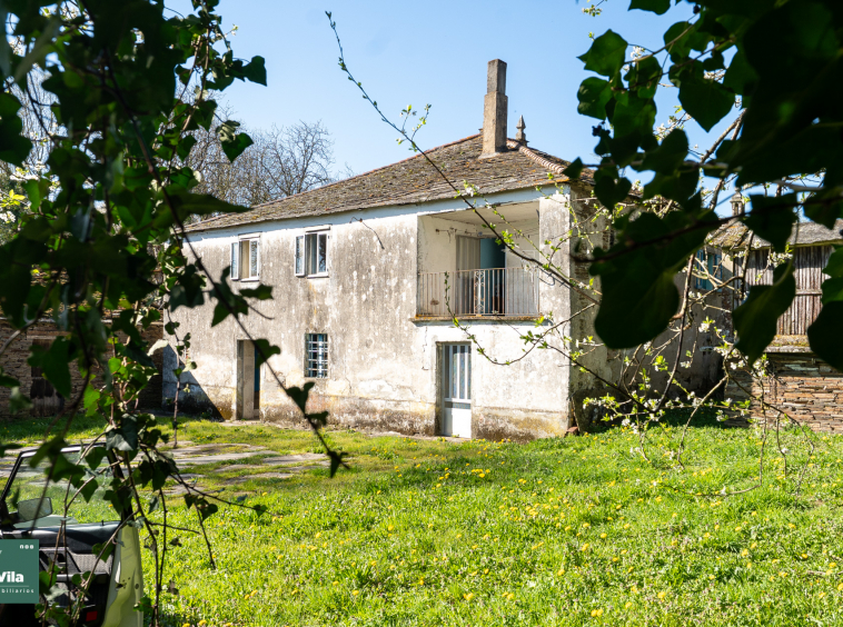 A apenas 4 minutos de Lugo, a unos 2,5 kilómetros, esta propiedad de piedra aparece con esa calma que solo tienen las casas que han vivido mucho y aún tienen más por dar. El acceso, a través de su pórtico, ya deja entrever un conjunto con carácter, donde cada elemento encaja sin esfuerzo y la piedra marca el ritmo de todo.
