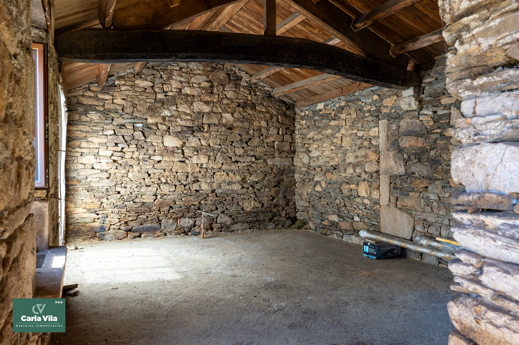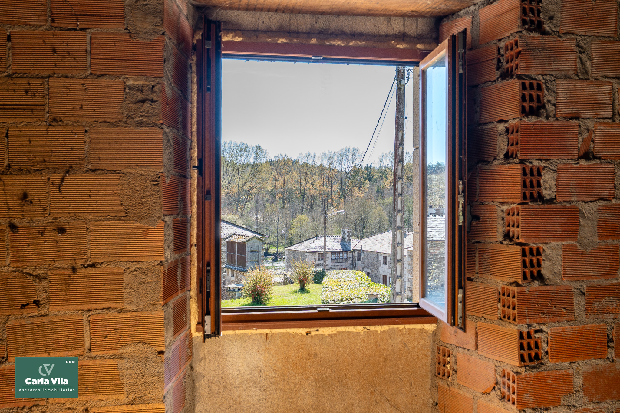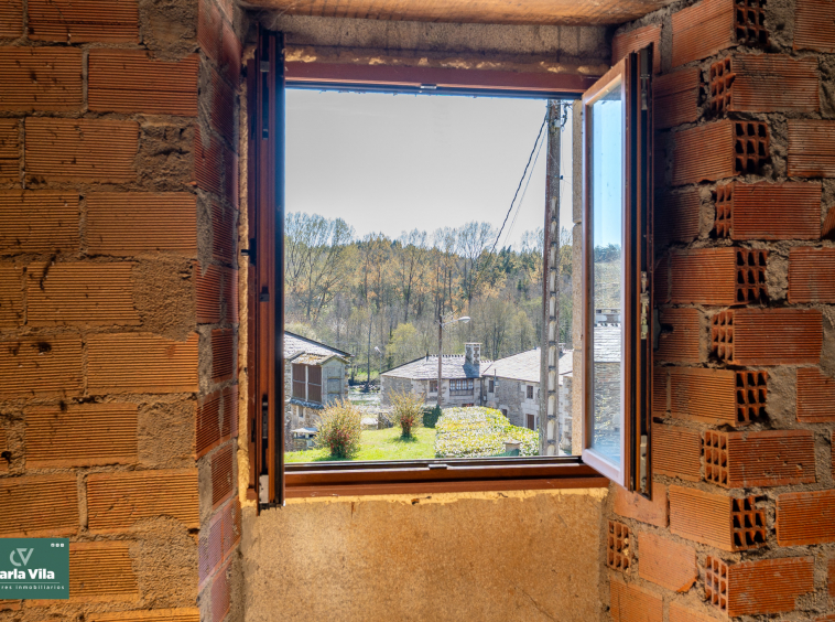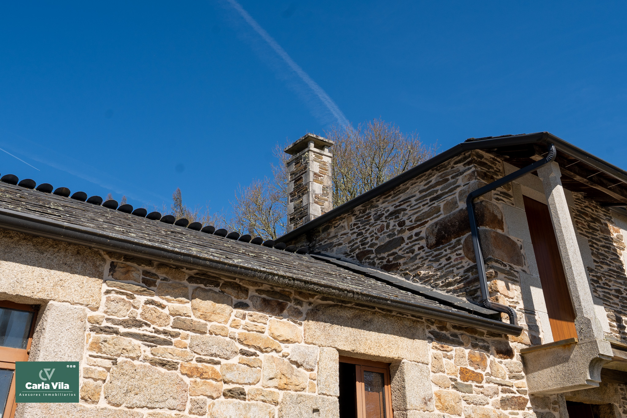 Apenas un pequeño conjunto de casas de piedra, restauradas con mimo, dibuja este enclave tranquilo donde el puente sobre el río marca la entrada a un entorno casi secreto. A tan solo 100 metros, el sonido del agua acompaña sin imponerse, creando ese ambiente que convierte una vivienda en refugio. Y en medio de todo esto, esta casa, pequeña en tamaño pero enorme en posibilidades, recupera su esencia con una rehabilitación exterior que respeta su origen: tejado nuevo de pizarra, ventanas, balcón, chimenea y una fachada rejuntada que vuelve a mostrar la piedra en su estado más auténtico.