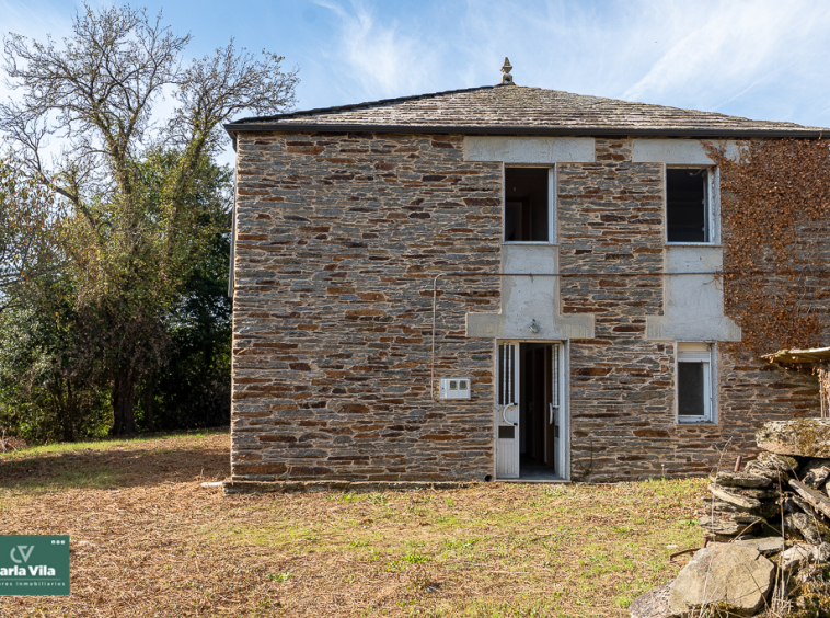 A solo 7 kilómetros de Lugo, el paisaje cambia sin avisar. La ciudad se abre paso al campo y, entre prados y aire limpio, aparece esta casa de piedra restaurada que mira al verde desde su posición serena, ligeramente elevada, con esa paz que solo se encuentra donde el ruido ya no manda.
