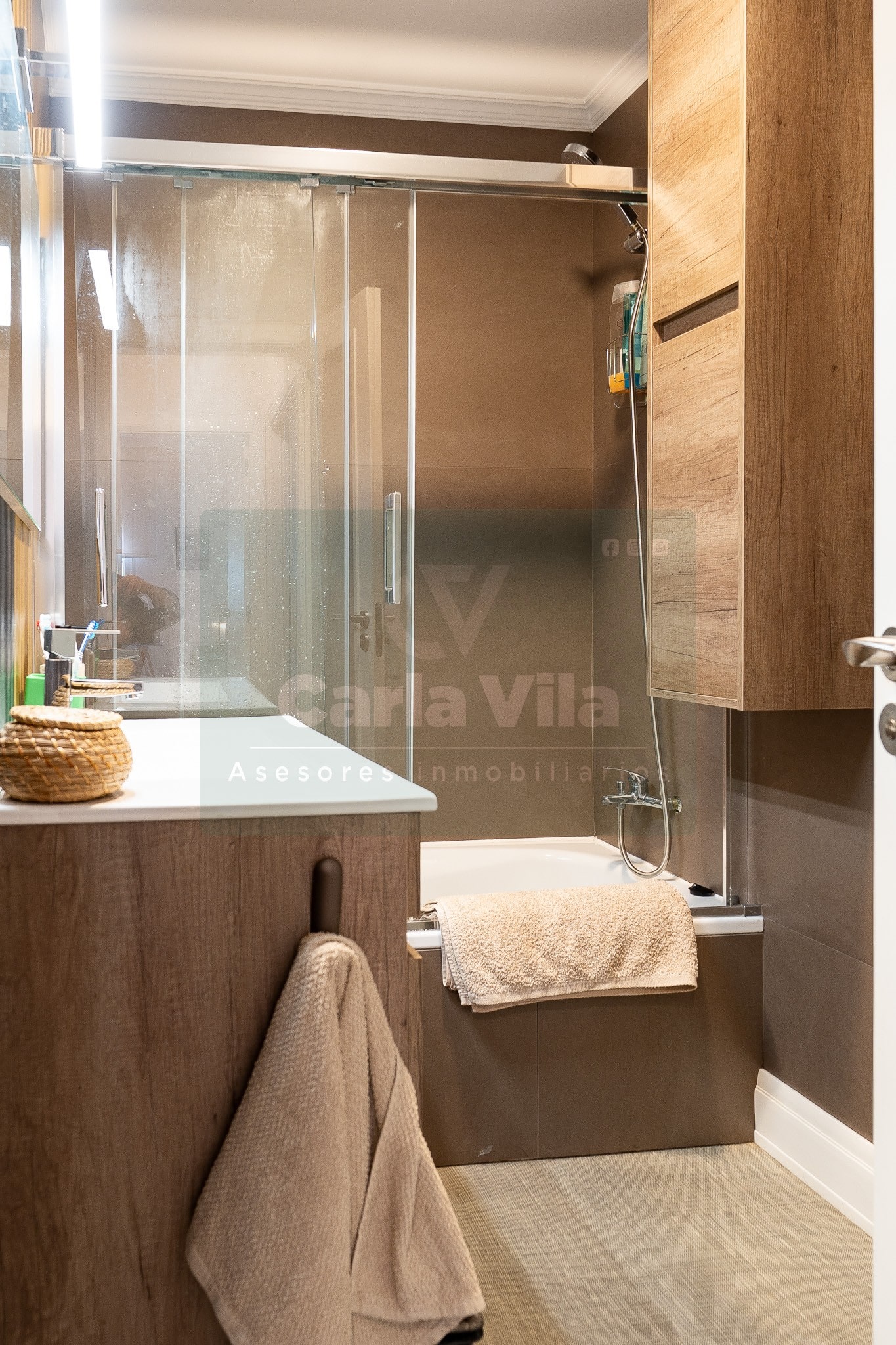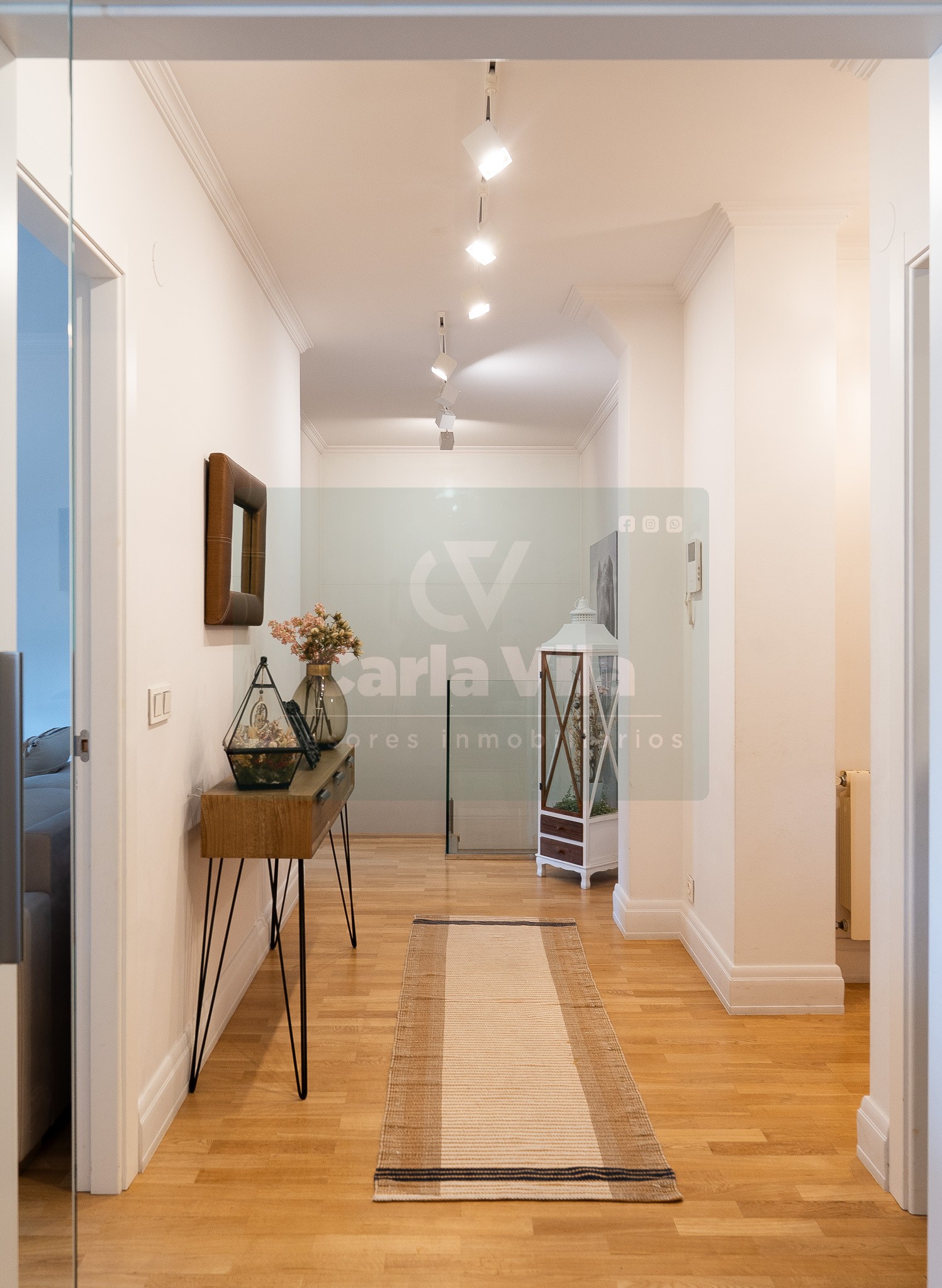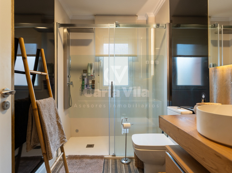 El cristal se cuela en las puertas correderas del salón y en el pasamanos de la escalera, aportando ligereza visual y un punto contemporáneo. Todo es exterior, todo respira. Y si hablamos de almacenaje, aquí hay sitio para todo: desde despensa en la cocina hasta soluciones prácticas que acompañan el día a día. Además, se entrega con trastero y dos plazas de garaje contiguas, a nivel de calle, para que llegar a casa sea, literalmente, fácil.
