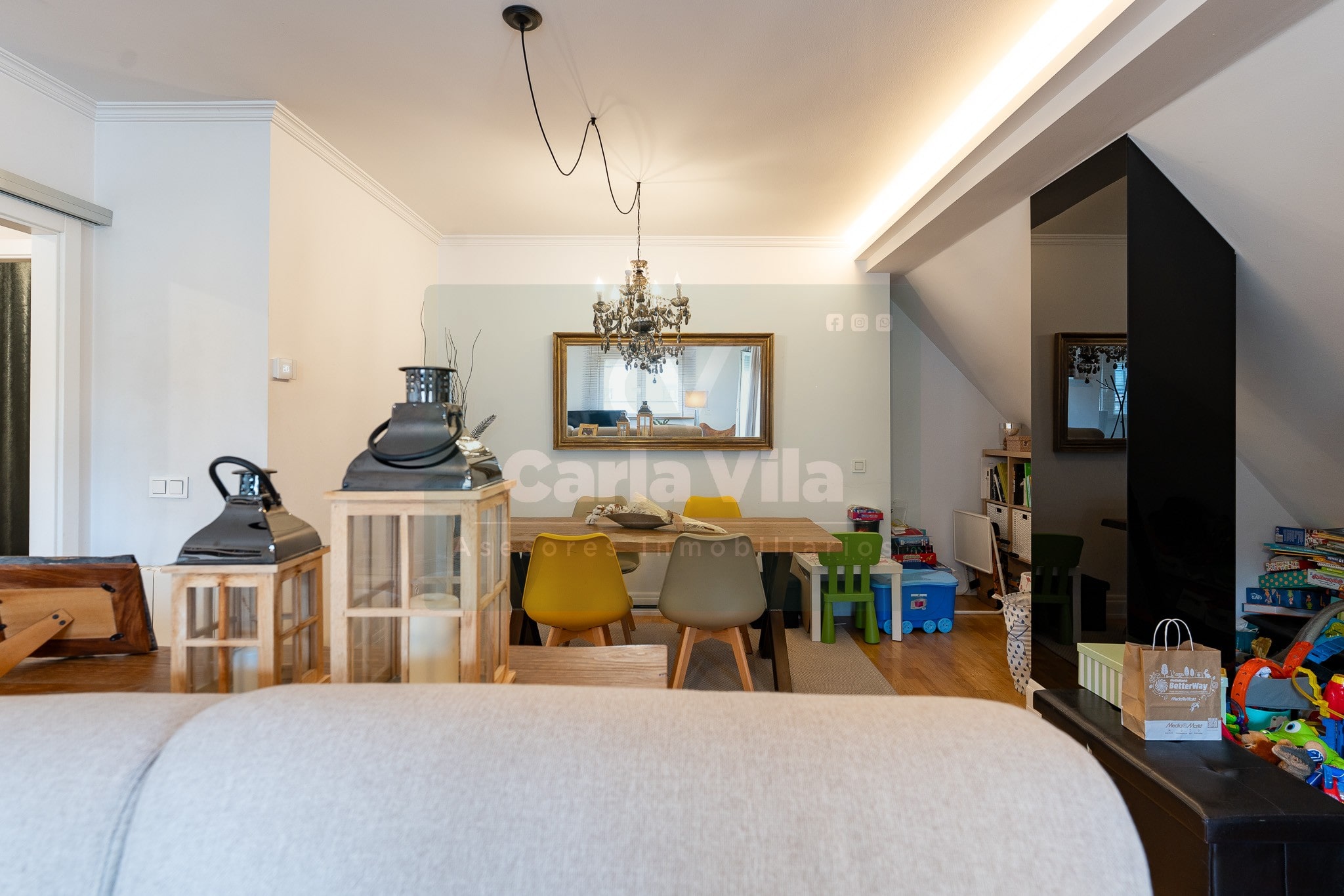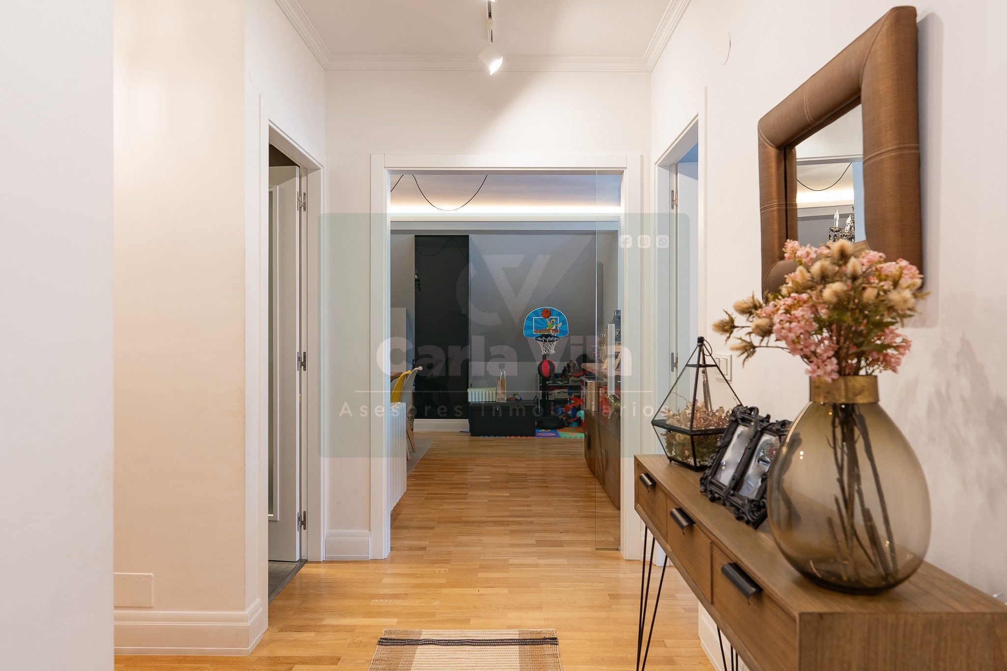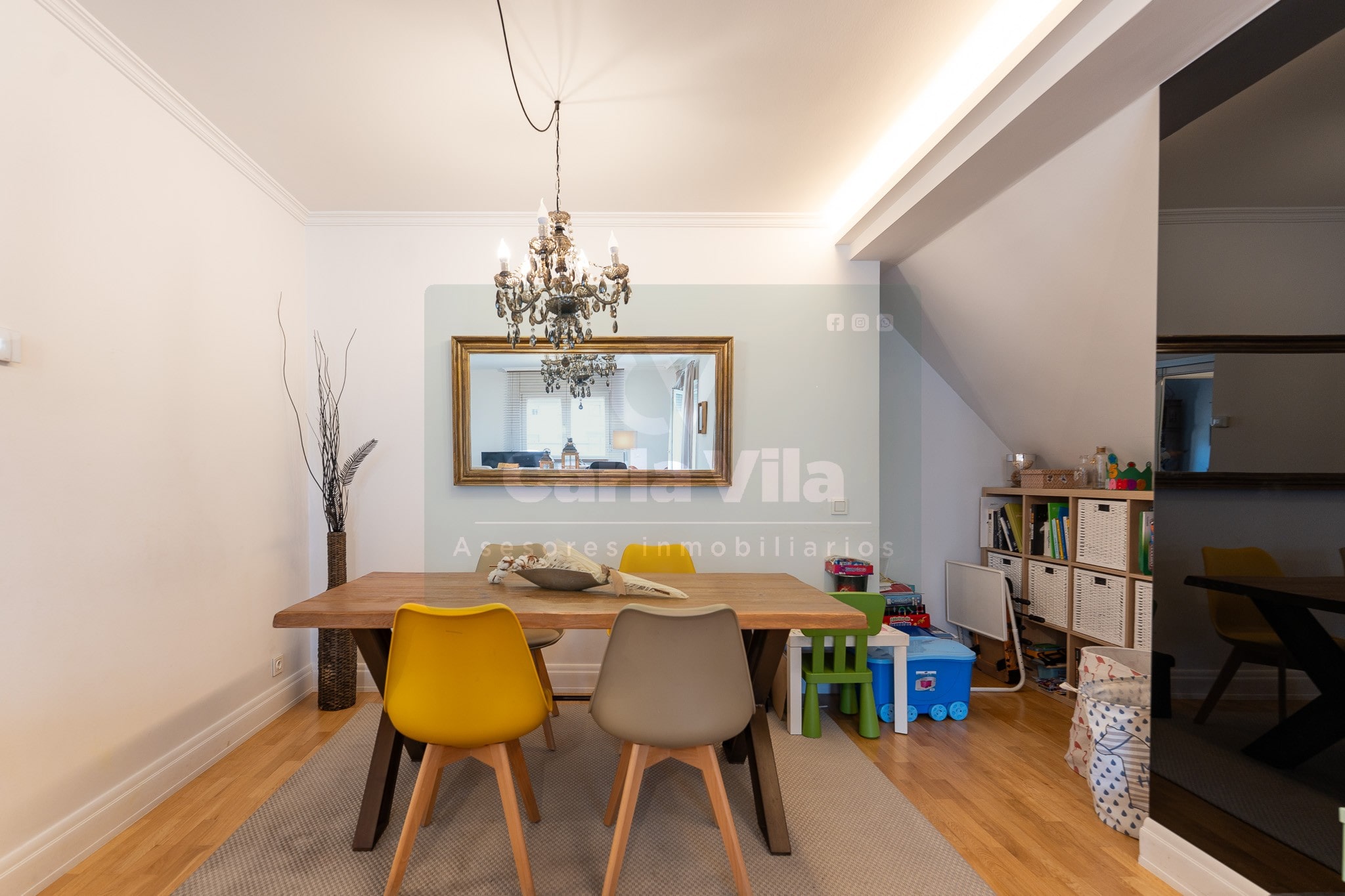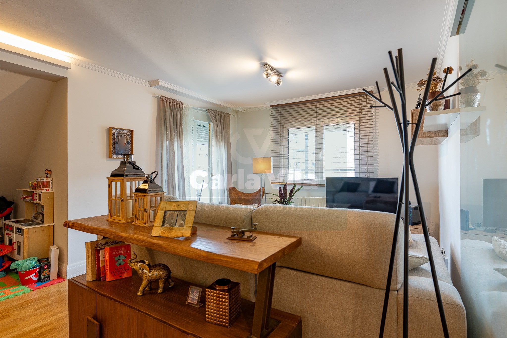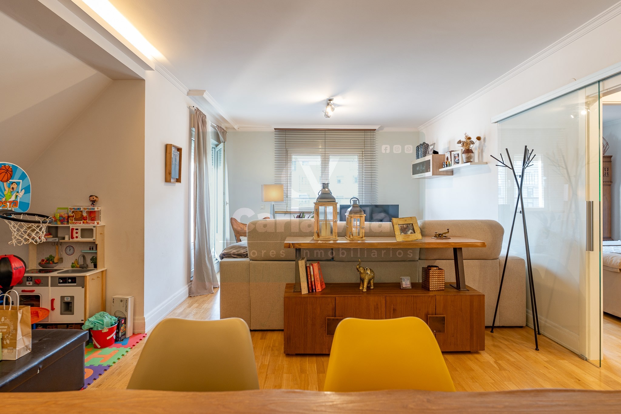 En Aceña de Olga, donde la ciudad se repliega para dejar paso al río, se abre este dúplex invertido que sabe combinar funcionalidad con ese punto de belleza que no busca llamar la atención, pero se deja mirar. Un piso que fluye como quien ya ha encontrado su ritmo, con entradas independientes en ambas plantas y el ascensor que entiende de comodidad, deteniéndose en cada una como si supiera que aquí todo está pensado con sentido.