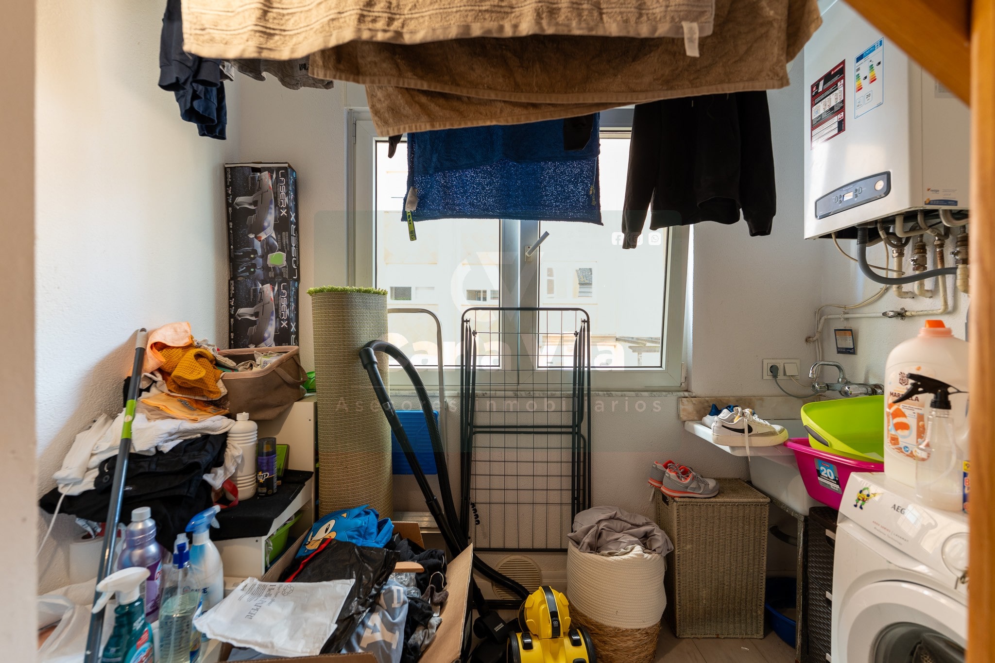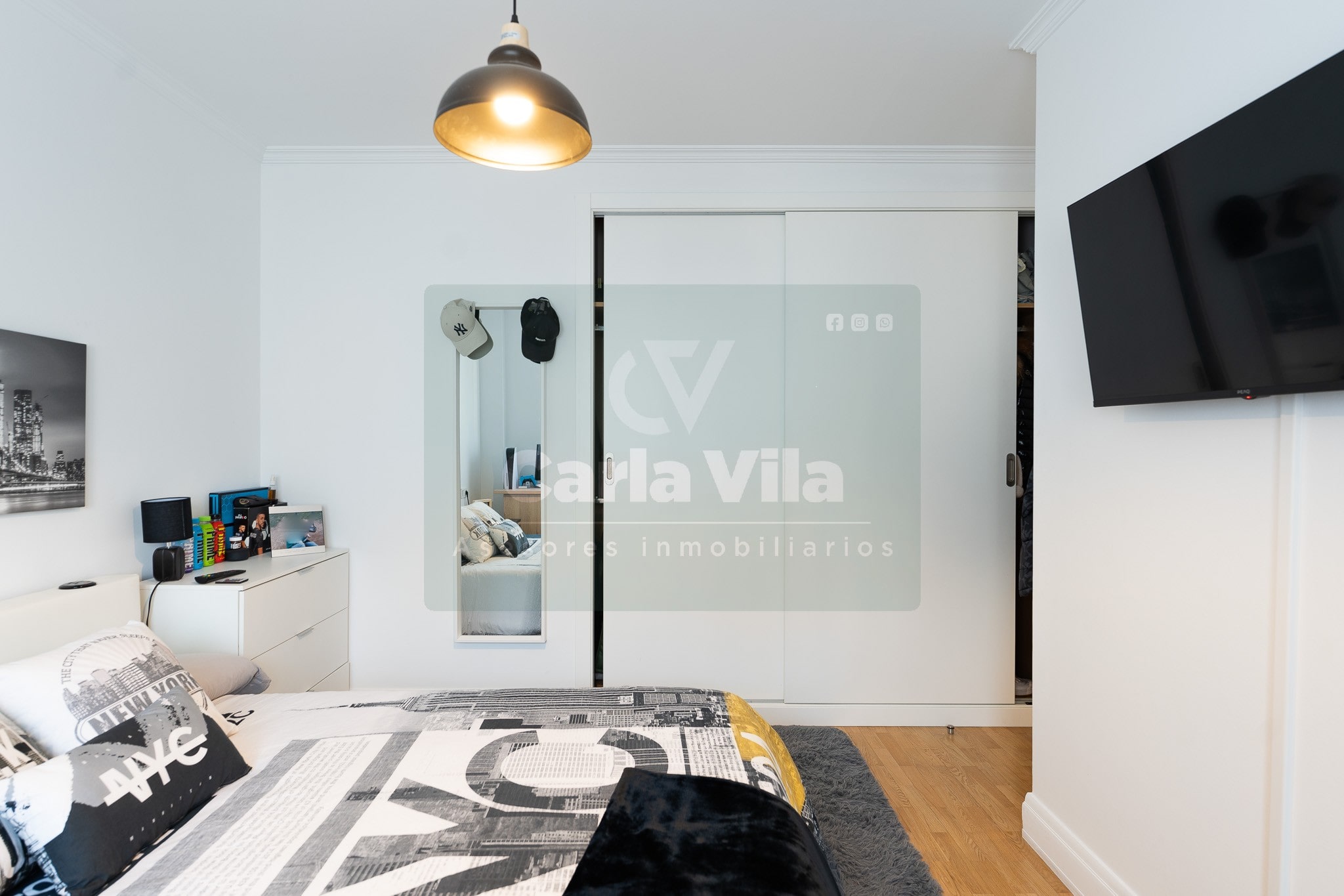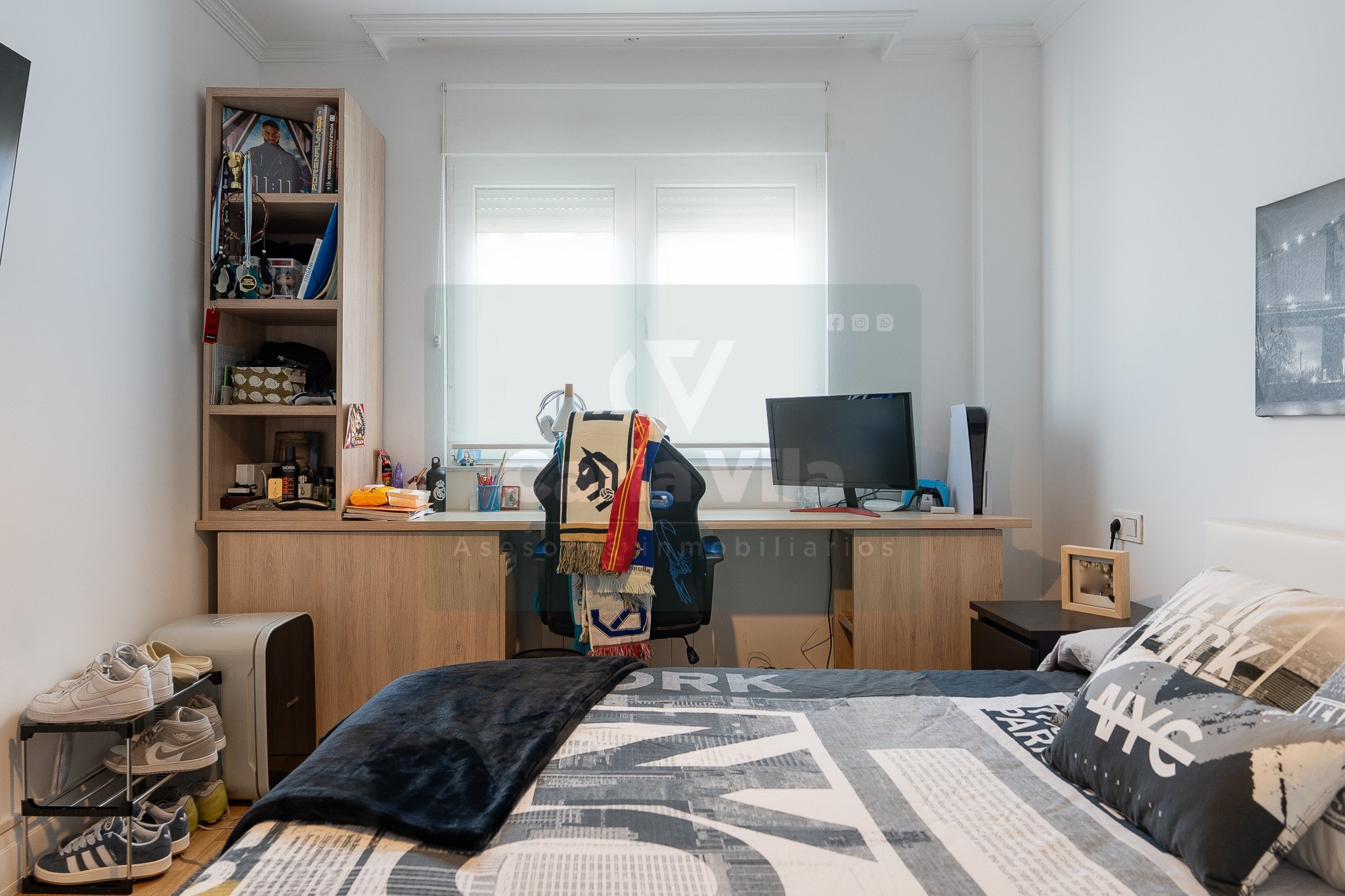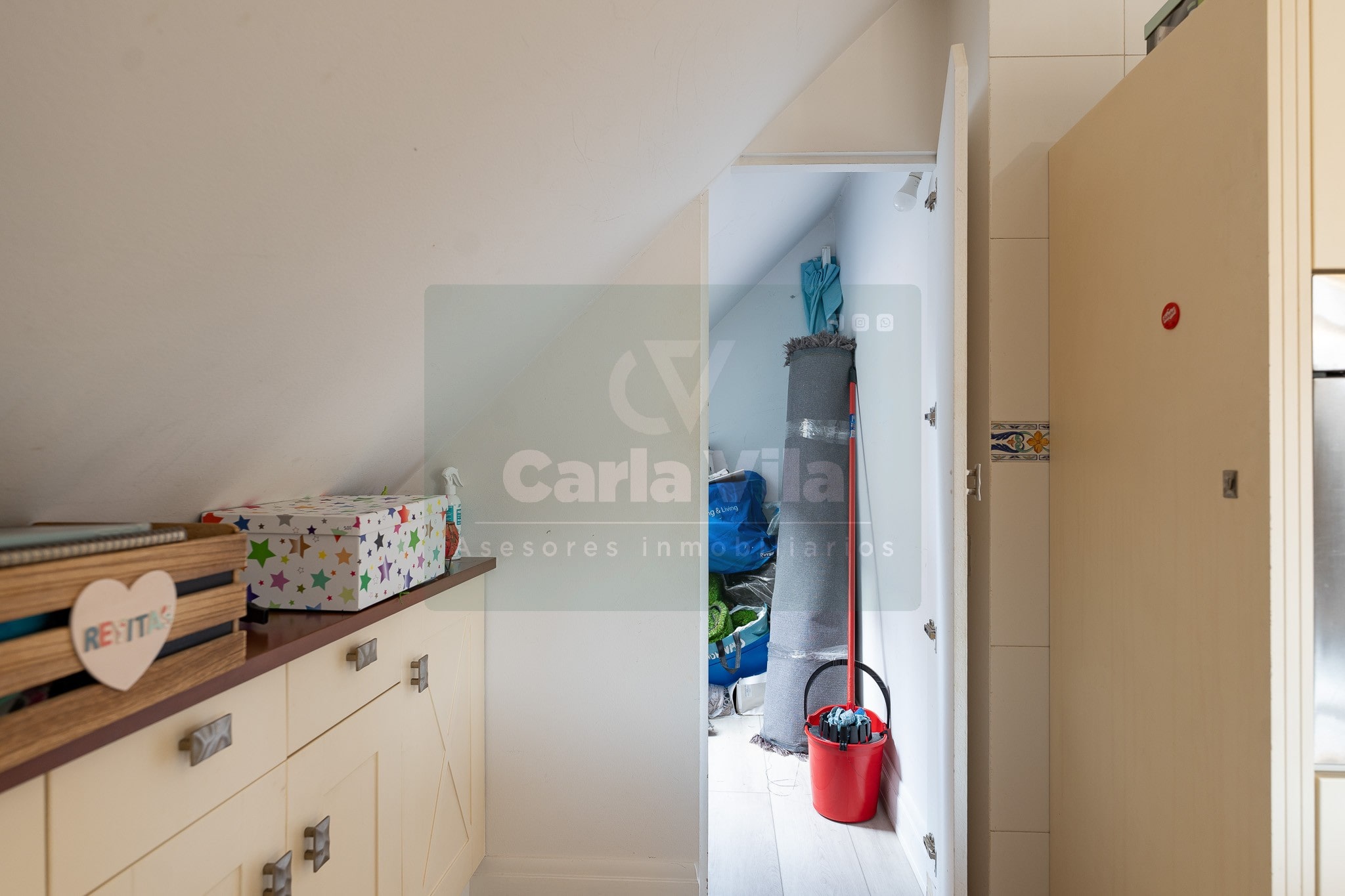 Abajo, el descanso. Tres dormitorios, todos exteriores, con armarios empotrados, y un hall con alma camaleónica que puede ser recibidor, rincón de trabajo o incluso vestidor, según lo que pida cada etapa de vida. La habitación principal hace esquina y desde su ventana el río vuelve a aparecer, discreto y sereno. El baño también ha sido renovado con gusto, con ducha, ventana y un suelo vinílico que imita tejido, detalle que suma sin buscar protagonismo. La zona de colada, bajo la escalera, aporta almacenaje extra y funcionalidad sin robar espacio.